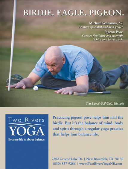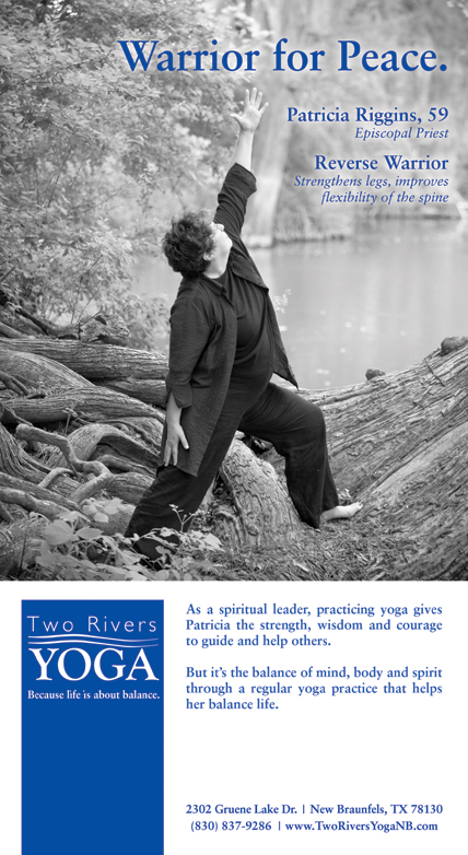 Two Rivers Yoga Two Rivers Yoga is the only recognized, established public yoga studio in New Braunfels offering an array of classes for each stage of yoga practice. Focused on integrating yoga into daily lifestyle, we developed a synergistic comprehensive advertising and public relations campaign featuring students “balancing” their life through the practice of yoga. |